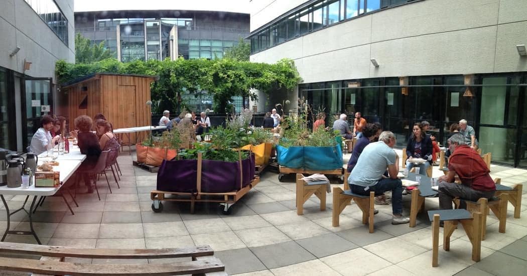 Il accueille des espaces de travail partagés, un café associatif, une colocatin solidaire, ainsi qu’un jardin expérimental.